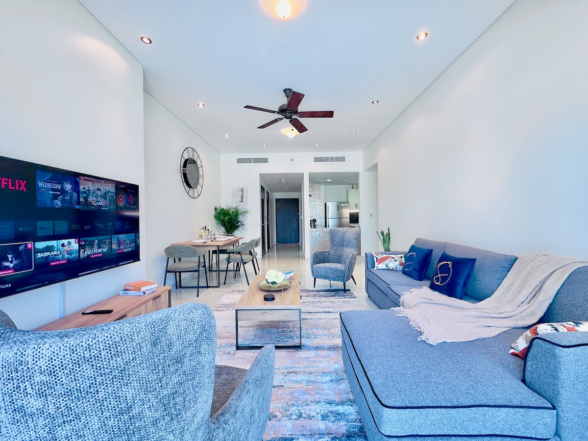 Wake up to a stunning sea view from your private balcony in this bright, stylish newly furnished 2‑bedroom apartment. Enjoy an open‑plan living space, modern kitchen, and spacious bedrooms with plenty of storage. Just steps from supermarkets and only 10 minutes to The Galleria and Reem Mall, it’s the perfect spot to relax, explore, and make the most of your stay in the city.