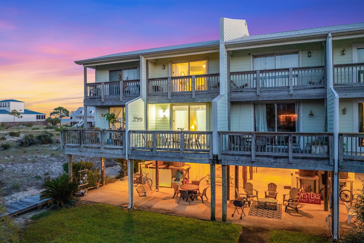 -900 feet to PRIVATE beach access!! Less than a 5 minute walk! -Gulf Views AND Mobile Bay views! -Quiet beach! -Sleeps six guests! -Fast Wi-Fi! -Keyless secure entry! -Outdoor Shower -Arcade game -Easy Parking Enjoy beautiful white sandy beaches and emerald green waters at the Seascape Townhouse. Perfect for families!