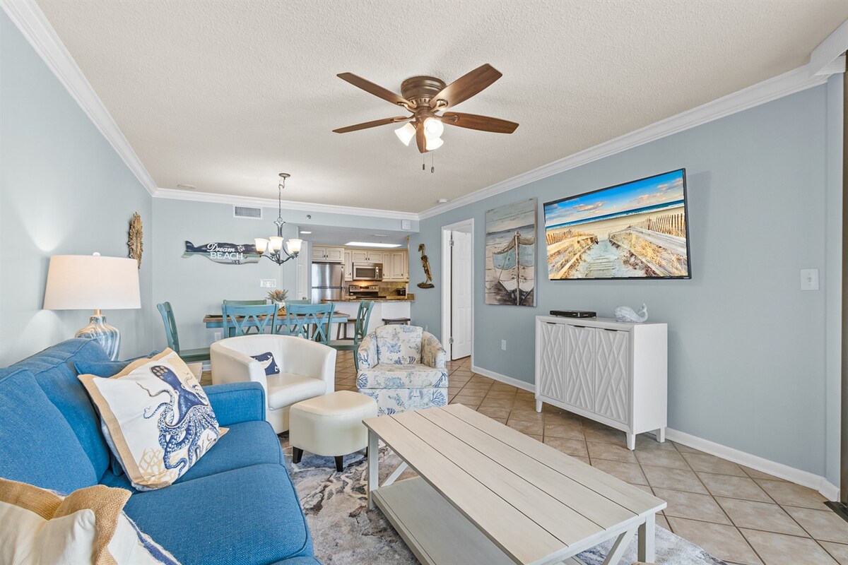 Newly decorated Caribe condo is a dream! This condo is in building B on the 2nd floor (3rd because parking is below) & sleeps 8 comfortably. The new 65 inch tv is loaded with all the apps such as ESPN and Netflix. This kitchen has a new refrigerator and all the appliances and cookware needed! The resort has tennis courts, pools, hot tubs, arcade, golf, a marina and a lazy river and cabanas. This is a boaters paradise! This unit also comes with 2 parking passes and additional parking if needed.