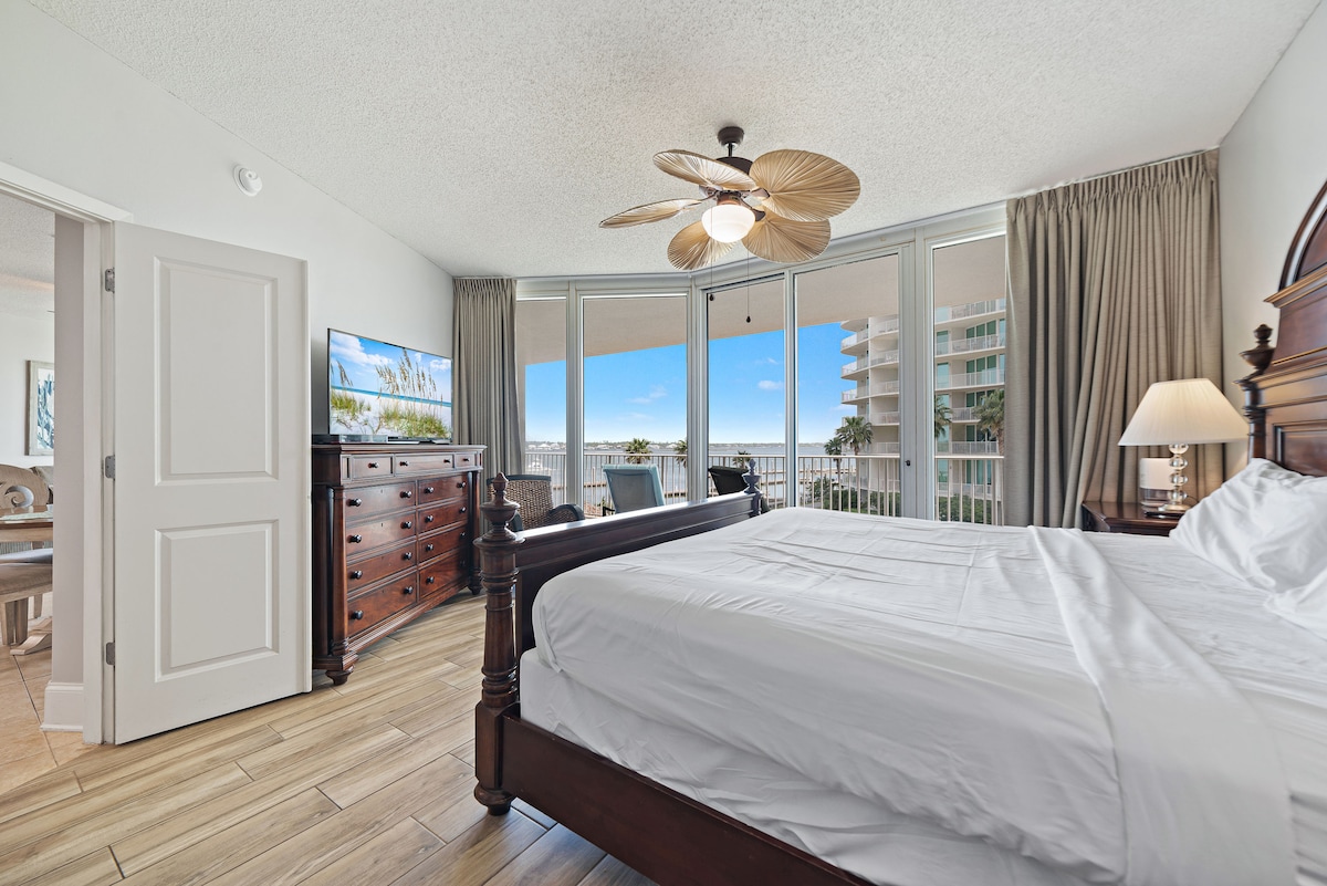 Newly decorated Caribe condo is a dream! This condo is in building B on the 2nd floor (3rd because parking is below) & sleeps 8 comfortably. The new 65 inch tv is loaded with all the apps such as ESPN and Netflix. This kitchen has a new refrigerator and all the appliances and cookware needed! The resort has tennis courts, pools, hot tubs, arcade, golf, a marina and a lazy river and cabanas. This is a boaters paradise! This unit also comes with 2 parking passes and additional parking if needed.