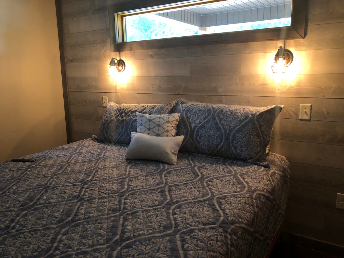 Each cabin is a beautiful, rustic space with vaulted ceilings and lots of natural light. Each has 2 bedroom and 1 and 1 /2 bathrooms and are fully outfitted to make your feel right at home.