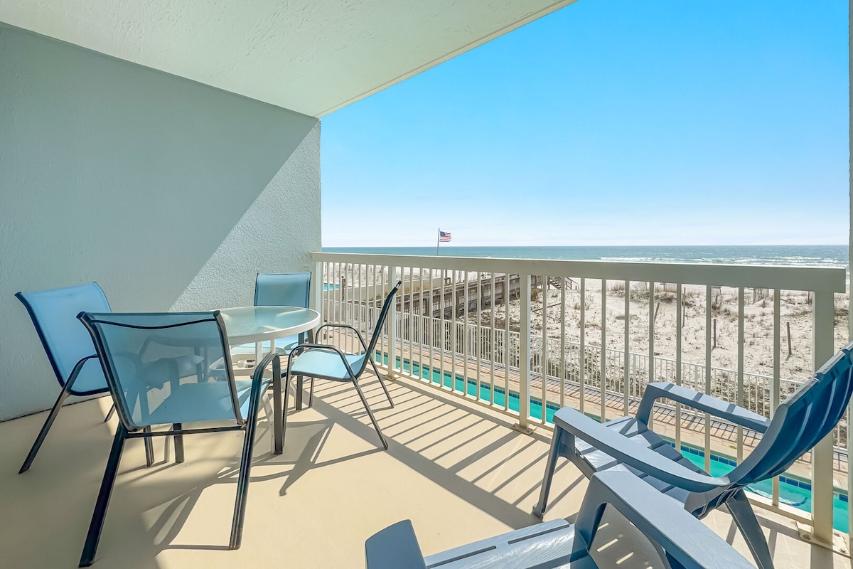 Retreat to this beautiful BEACHFRONT 1bd/1ba condo located in the beautiful Gulf Shores Plantation Resort steps away from the Gulf Of Mexico! Located in the quieter, more secluded part of Fort Morgan/Gulf Shores, but close enough to everything you need within 20 min. You will absolutely love everything about this condo, from the fun, beachy decor to the sounds of the ocean waves while sitting on the top (3rd) floor balcony. MAX 4 guests, but ideally perfect for couples or small families!