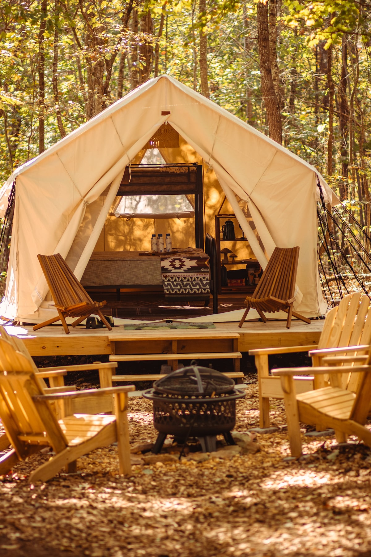 Escape to a world of serenity in our gorgeously decorated Belle Glamping Tent. Nestled beside a live spring, our tent is ideal for a romantic getaway. Relax in your own private oasis, dine al fresco on your outdoor deck and enjoy an open-air shower under the stars. Our fire pits provide warmth and light for a cozy ambiance, and our hanging lights provide a beautiful focal point for entertaining. wishuponastargetaway com The outdoor bathhouse allows for a cleaner, easier restroom experience