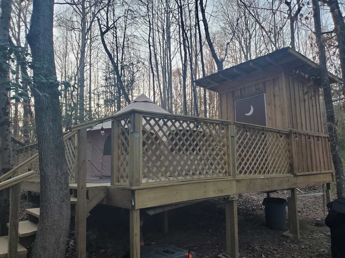 Enjoy the lovely setting of this cozy spot in nature. Nestled in the trees on Lookout Mountain in Alabama lies an unforgettable glamping experience at R&W Homestead. Centrally located between DeSoto State Park and Little River Canyon. This glampsite retreat was created to be a truly restful and unplugged getaway. It can accommodate up to 4 people. It is a lovely romantic space for couples, fun for a girls trip, or a wonderful place to unplug with friends.