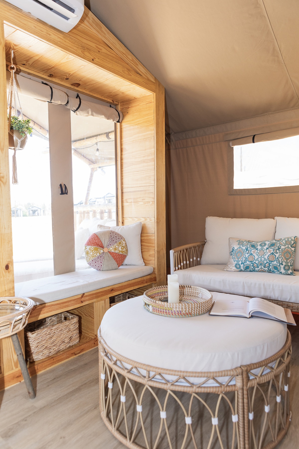 Escape to a world of luxury in our gorgeously decorated Belle Glamping Tent. With a breath-taking view of the waterfront, our tent is ideal for a romantic getaway. Relax in your own private oasis, dine al fresco on your outdoor deck and enjoy an open-air shower under the stars. Our fire pits provide warmth and light for a cozy ambiance, and our hanging lights provide a beautiful focal point for entertaining. Sink into the comfort of plush furnishings, Visit us on wishuponastargetaway