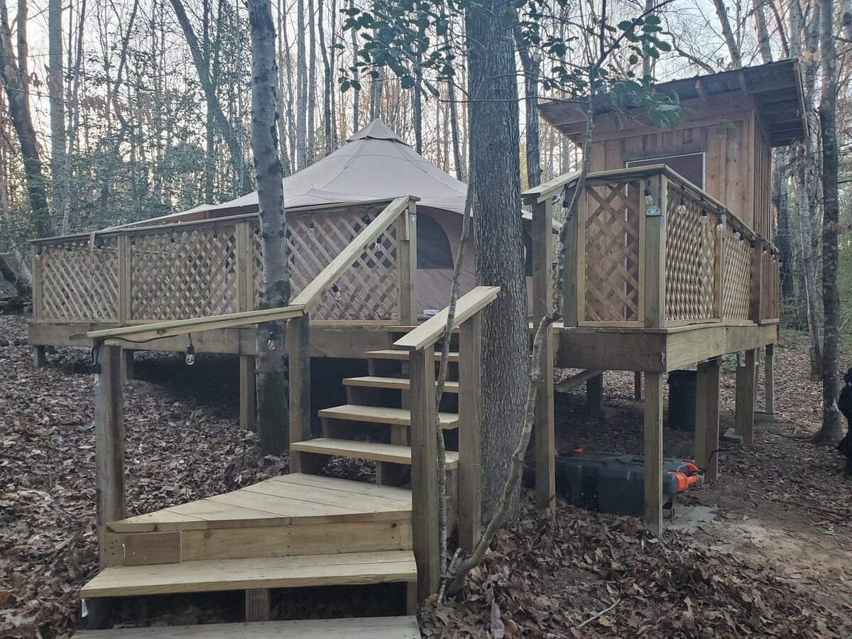 Enjoy the lovely setting of this cozy spot in nature. Nestled in the trees on Lookout Mountain in Alabama lies an unforgettable glamping experience at R&W Homestead. Centrally located between DeSoto State Park and Little River Canyon. This glampsite retreat was created to be a truly restful and unplugged getaway. It can accommodate up to 4 people. It is a lovely romantic space for couples, fun for a girls trip, or a wonderful place to unplug with friends.