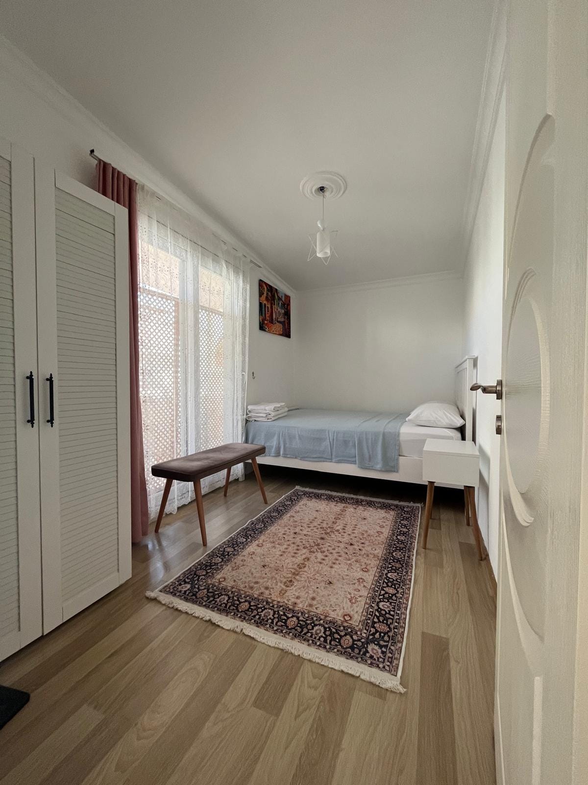 Merkezî bir konumda bulunan bu yerde kalırsanız ailece her yere yakın olacaksınız. Dairemiz Çeşme merkezde, Çeşme marinaya yürüme mesafesinde, tüm plajlara arabayla 5- 10 dakika mesafededir. Salonda ve her odada klima mevcuttur. 2 odada çift kişilik yatak ve salonda iki kişinin yatabileceği yatak olabilen koltuk mevcuttur. Toplamda 6 kişi konaklayabilirsiniz.