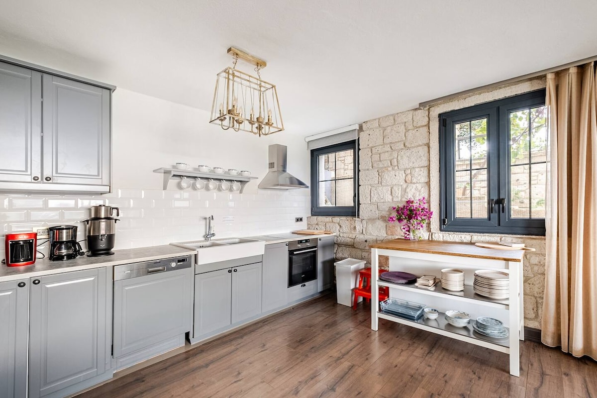 This beautiful stone villa in Cesme offers 7 bedrooms with ensuite bathrooms, stunning sea views, spacious 2 living areas and 2 fully equipped kitchens, BBQ, parking and wifi. With a private pool, large terraces and a peaceful t’s ideal for large families and group holidays. Cozy in winter and breezy in summer, this villa delivers year-round comfort and privacy. Perfectly located near Alaçatı, beaches and top dining, it’s one of Çeşme’s best luxury villa rentals.