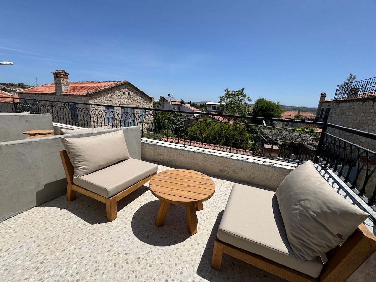 Sunset No:23 Alaçati is one of the few ground-floor houses in Alaçati. Thanks to its special location, the house is like a real oasis: in the middle of the village and yet far away from the noise and the hustle and bustle. As soon as you close the door behind you, peace, and idyll reign. It is an original stone house built from solid stone, hence the thick walls (approx. 60 cm) All trendy restaurants, cafes, and boutiques are within a few minutes' walking distance.