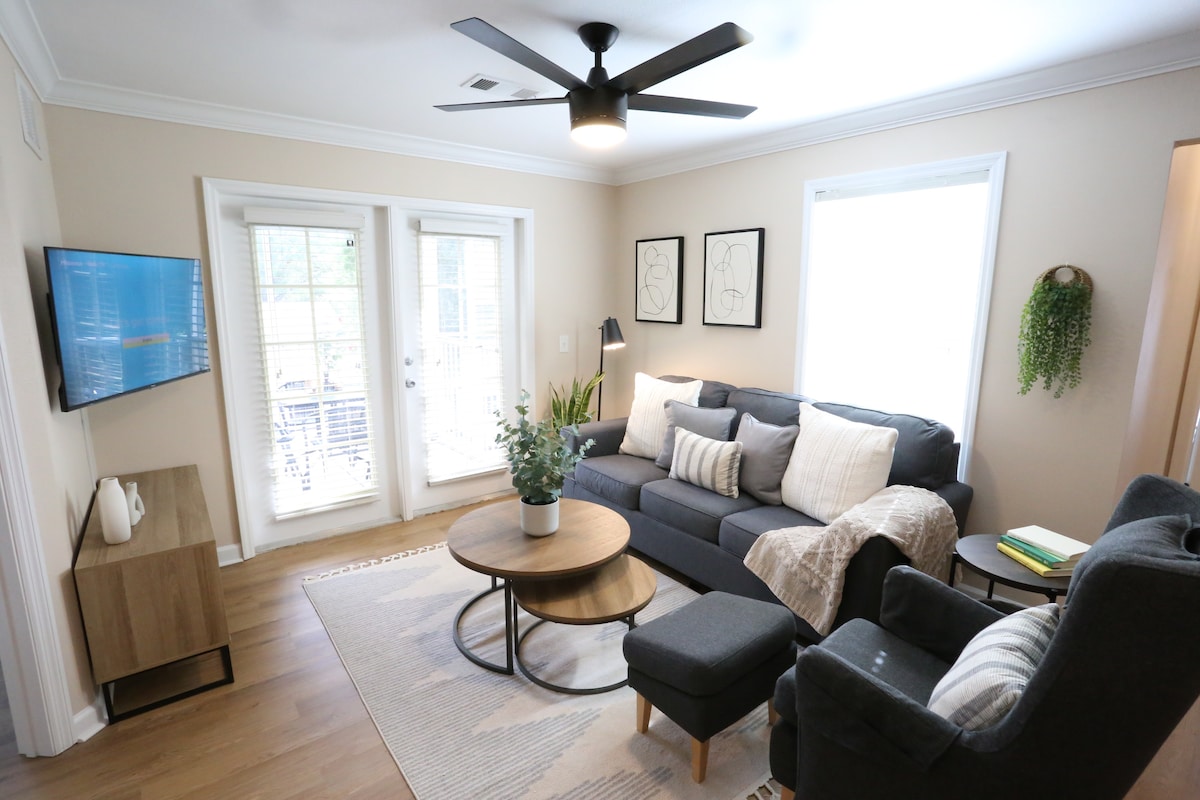 Fully renovated Zen condo perfect for your visit to Gainesville. Located a stone's throw from I-75, North Florida Regional Medical Center, and not far from UF and Shands, this updated cozy yet modern apartment has everything you need for a pleasant stay. Fully equipped with a KING bed, pullout sofa, and dedicated workplace. Enjoy your morning coffee or evening drink in the outdoor patio. Whether you're traveling for work or leisure, this apartment has it all.