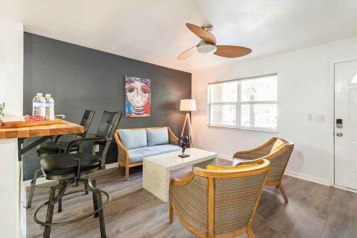 Stay in this stylish, renovated Gainesville condo with a private one-car garage and reserved parking. Centrally located, you’re steps from restaurants, coffee shops, dessert spots, shopping, and a movie theater. Perfect for UF events, Gators football, graduations, or visits to Shands/UF Health, this modern, comfortable retreat offers everything you need for a relaxing, hassle-free stay with easy access to Midtown Gainesville and downtown attractions.