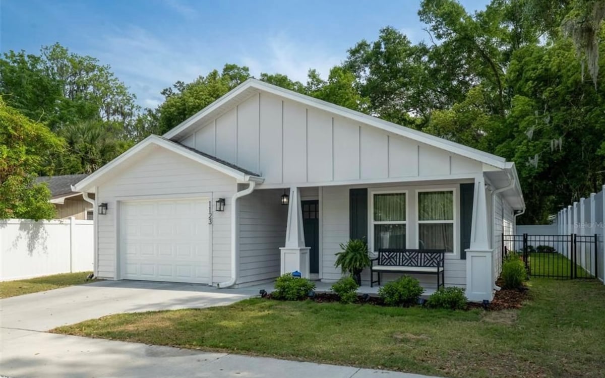 This recently completed single family home, was built with attention to detail & comfort in mind. It’s nestled within walking distance to the UF CAMPUS & STADIUM, Publix and downtown. The home provides guests with an extremely rare combination of a garage & multi-port Tesla car charger, plus a fully fenced yard. The residence was finished with high end decor from Clive Daniels, custom window treatments and rugs, premium Kitchen upgrades, the finest bedding & art and a fully equipped kitchen.