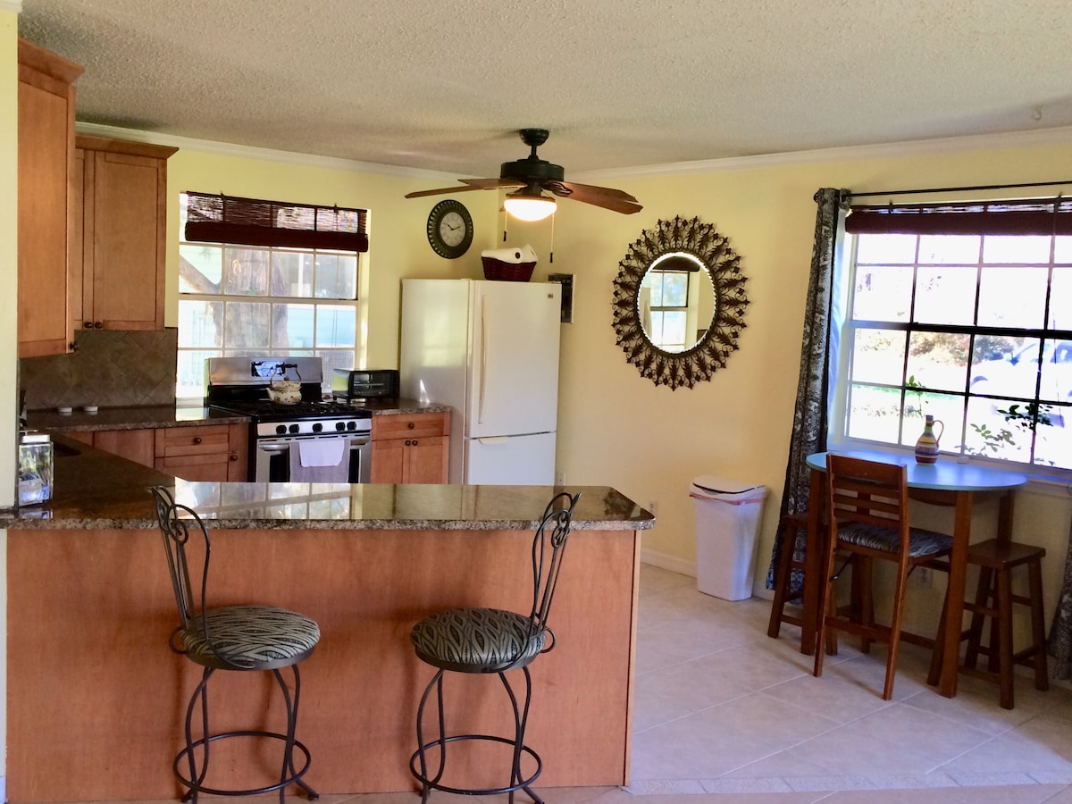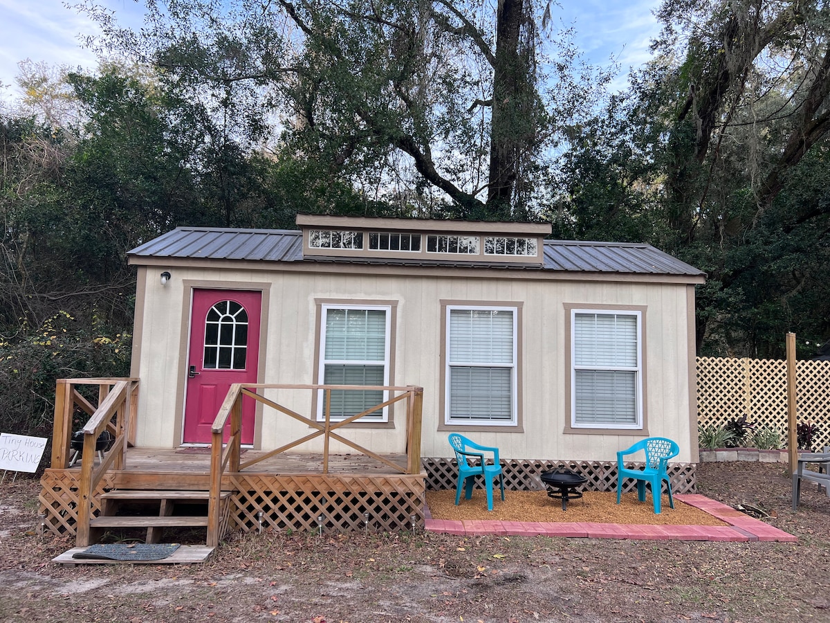 Cute, cozy, freshly remodeled, private guest house on a beautiful 5 acre farm. Enjoy your own backyard herb garden with privacy fence, picnic table and fire pit. New kitchen with gas stove, microwave, toaster oven, coffee-maker, and dining area perfect for enjoying meals. The bedroom is equipped with a smart TV, queen bed, & extra blankets. This country getaway is near the University of Florida (12 miles), Blue Springs (21 miles) Ginnie Springs (24 miles), and historic High Springs (15 miles).