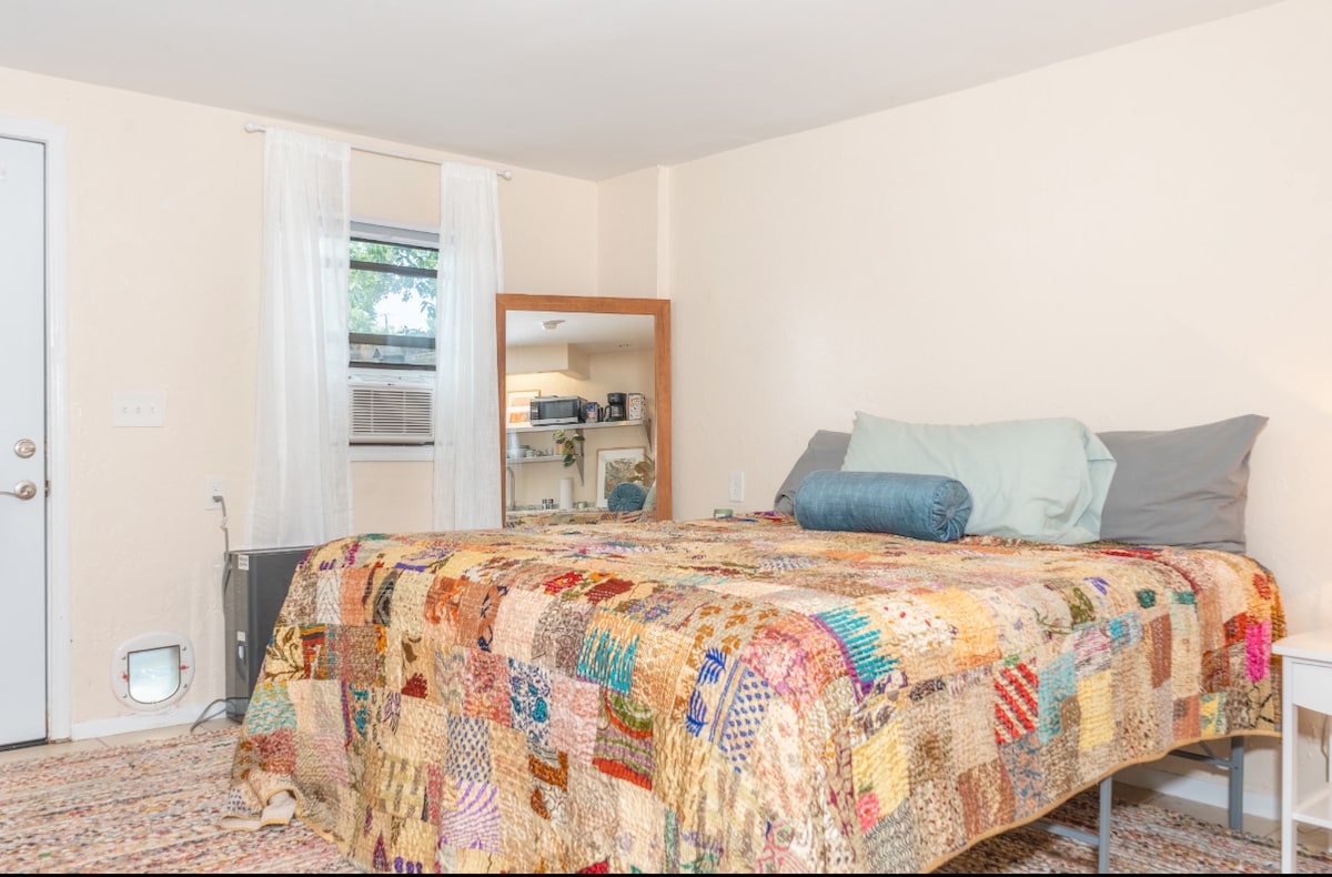 格林维尔中心安静的加大双人床小屋,带院子和自行车