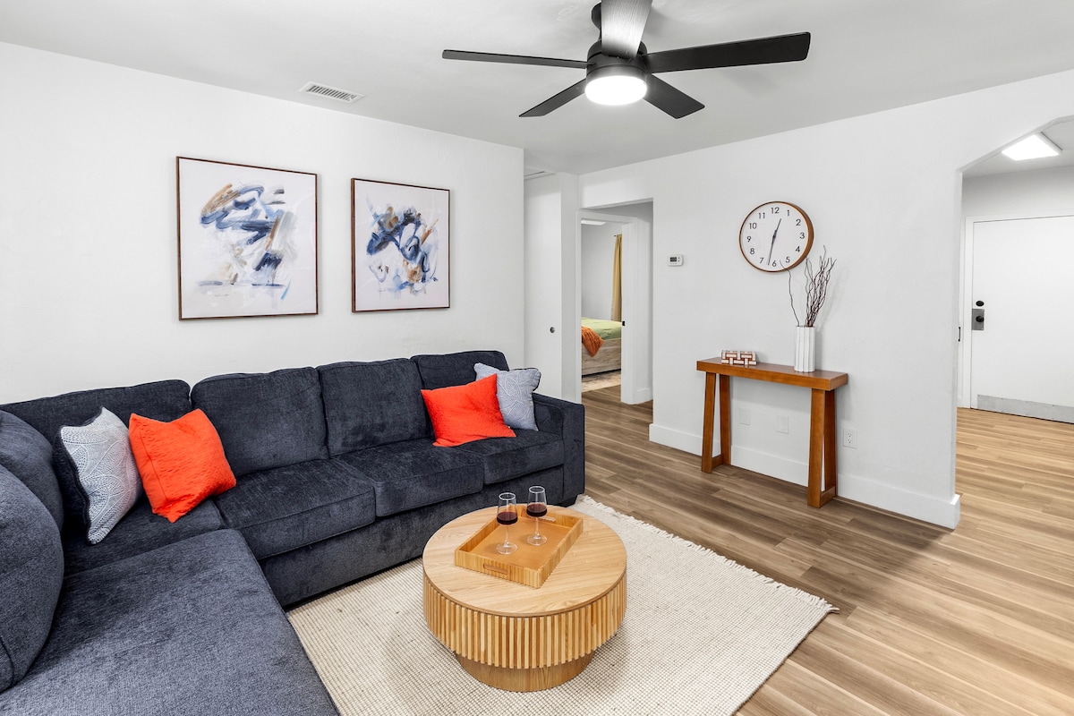 Come and stay at our Cozy Casa--A Spanish style mid-century modern Airbnb. We have lovely custom build butcherblock countertops, Spanish tile throughout, renovated bathroom, and a giant Aircrete Patio. You will be close to everything when you stay at this thoughtfully appointed Airbnb. Release your kids to Reserve Park across the street, complete with Army style workout equipment. Your family will be close to everything when you stay at this centrally-located place.