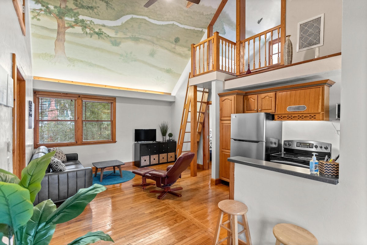 If you are visiting Gainesville, look no further than Camellia Loft. This historic gem was built in 1924 and has been freshly renovated to bring it into the modern era. Enjoy the birdsong and majestic trees from your private deck overlooking the backyard—or relax inside as light streams through the loft's massive skylights. Only 0.5 miles to UF campus and exactly 1 mile to the stadium, you can easily walk to campus or games. Unwind by the shared fire pit or enjoy cooking on the grill
