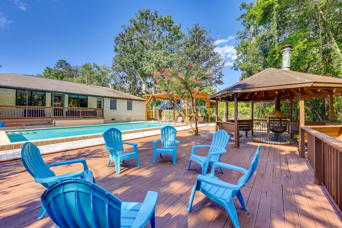 Modern 3BR Pool Home • 5 Mins to UF & Downtown 🏊 Modern 3BR home with private pool & patio 🚗 5 min to UF campus, stadium & downtown dining 🍳 Fully stocked kitchen + spacious living areas 🛏️ King bed + comfy bedrooms for restful sleep 🔥 Firepit & outdoor lounge for evening gatherings ✅ Free parking, WiFi & easy self check-in ✨ Relax & recharge in a private pool retreat just minutes from UF and Downtown Gainesville. Perfect for families, groups, or game-day stays. BOOK NOW! Dates fill fast!