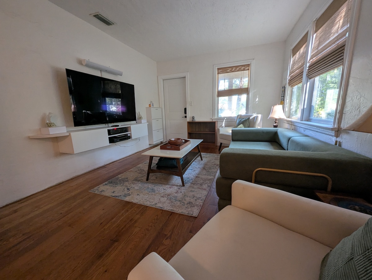 You'll love the access to walk downtown, its just a short 10 min walk. Stadium is a 10 minute drive or 25 ish minute walk.] Bedroom can sleep 2 in the bed its a full. Couch in the living room for a third. If you want to bring more guests thats totally okay. I just ask for $20 per extra guest if its over 3 guests. Bring an air mattress. Any questions please reach out. This is a perfect spot if youre coming in town for some gator games!