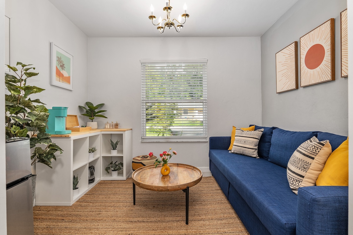 NEWLY RENOVATED - Enjoy your Gainesville stay in this mid-century modern studio 0.5 miles from UF and 2 miles from UF and HCA hospitals. No detail was overlooked in this beautifully designed detached guest house with an abundance of natural light, upscale finishes, and endless amenities - kitchenette, mini fridge/freezer, smart TV, and more! This conveniently located private and quiet space in the heart of Gainesville is perfect for anyone visiting for just one night or a few weeks.