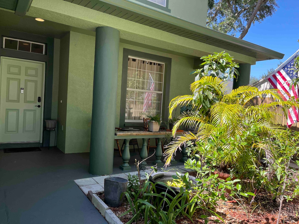 Studio apartment: Sleeps 3. Near major highways, beaches, Busch Gardens, & universities. Hospitals and Tampa airport within 30 minutes. This studio boasts a queen bed, a custom-made twin-size Murphy bed, a kitchenette, a table/workstation and a private outdoor patio. Designated parking and keypad entry.