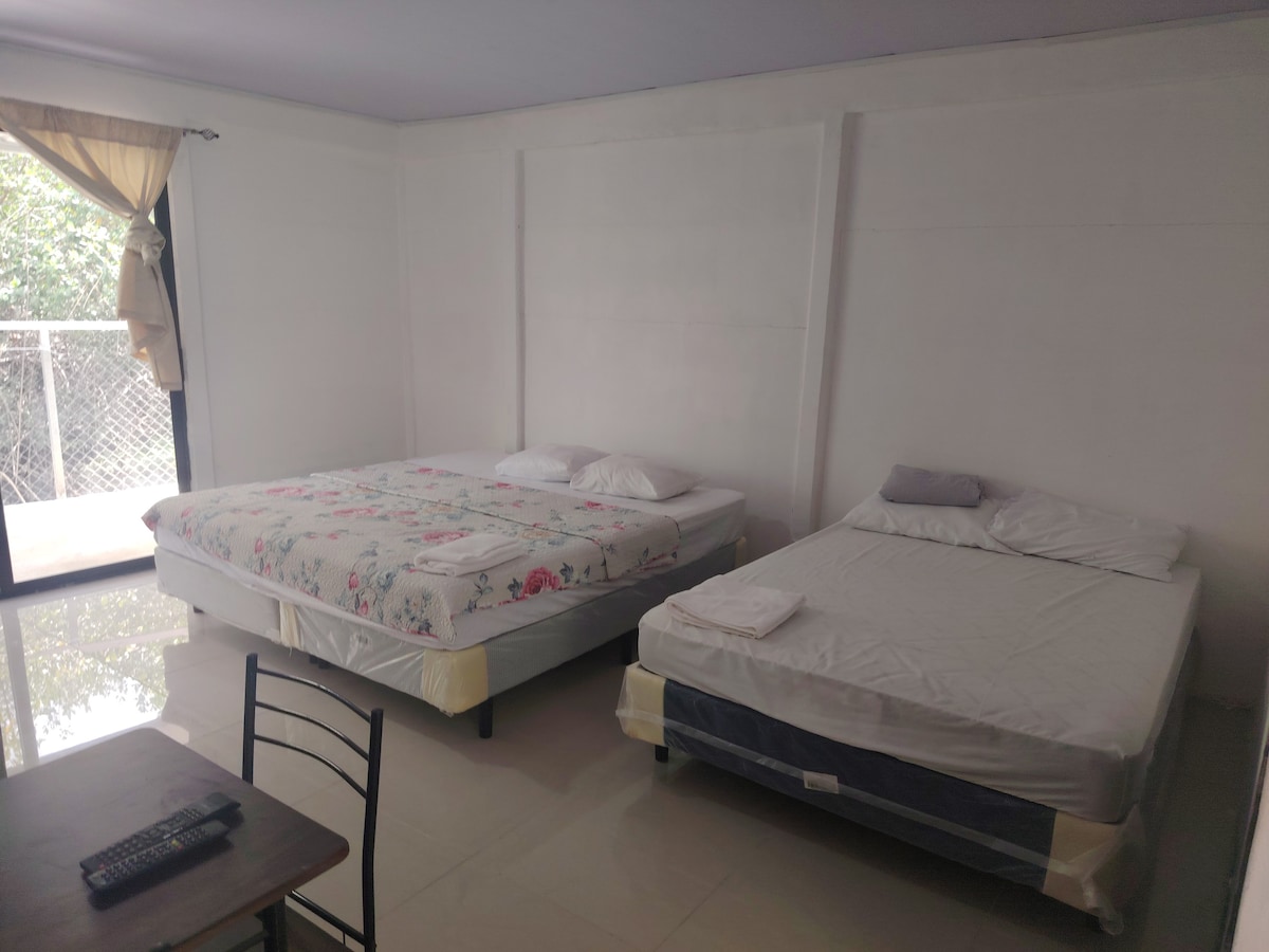 Nimbu Marea room, has an amazing view of the Gulf of Nicoya, sounds of waves from the Pacific ocean will be your soundtrack while you rest. Beaches in Costa Rica are public. This beach is accesible straight from the backdoor within outdoor shower to rinse off after swimming. The apartment has 2 bedrooms equipped for up to 5 guests, a kitchenette, full bathroom, small dining room and a balcony. You may also find a bbq ranch and plenty of sunbeds downstairs.