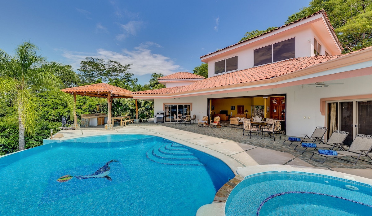 Casa Cantamar is a 5 bedroom 5 bathroom beach front villa that offers a classic beach front oasis centrally located between both international airports. 1 hour from SJO and 1.5 hours from LIR. There are 2 half baths and an outdoor shower adjacent to the pool with spa. Watch the sunrise with a cup of coffee on the front balcony and enjoy a glass of wine while watching the sun set over the beach from the private veranda at the rear. Enjoy private sunset walks on the virtually secluded beach.
