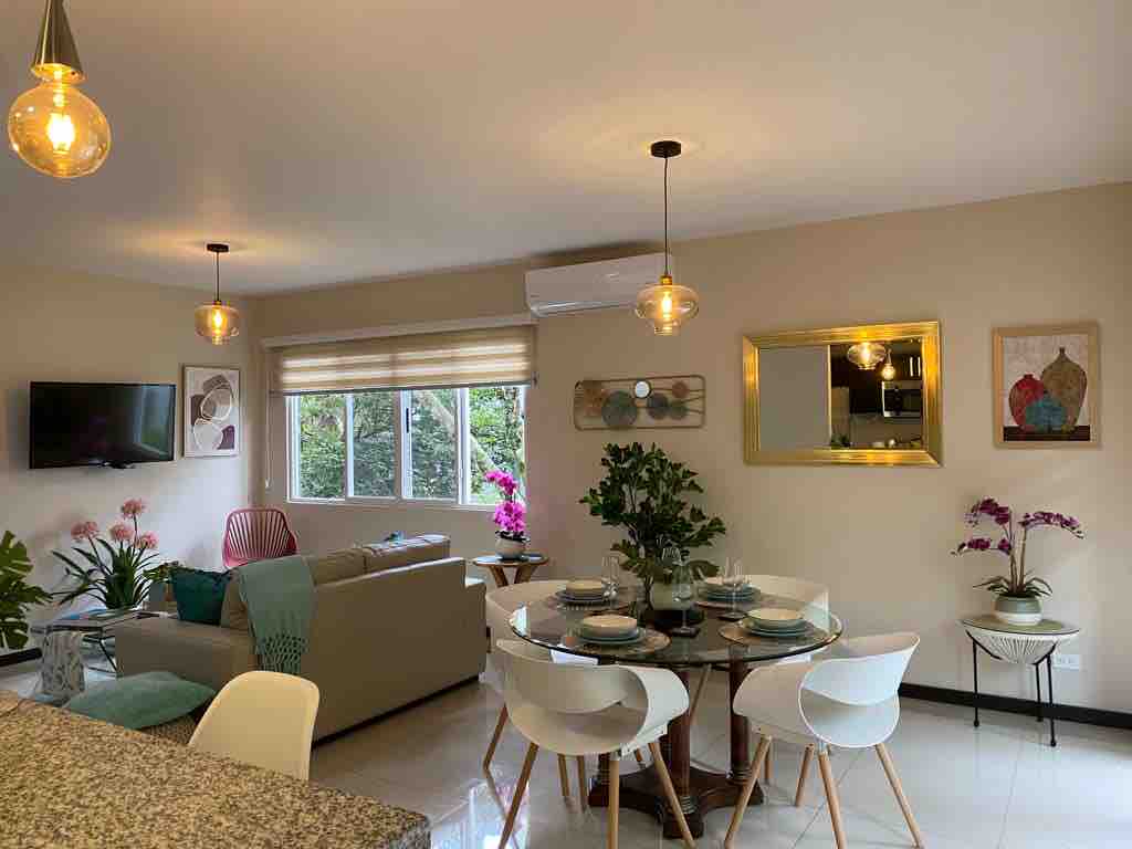 Welcome to our cozy and modern apartment, located just 3 minutes from SJO Airport. Our fully equipped apartment is designed to make your stay as comfortable as possible and is situated within a secure and peaceful condominium complex with: - Free Parking - Shared Gym - Shared Pool - 24/7 Security - Co-working space - Club House - Playground It is located just 4 minutes from Walmart and within walking distance from City Mall, you'll have access to shopping and many dining options.