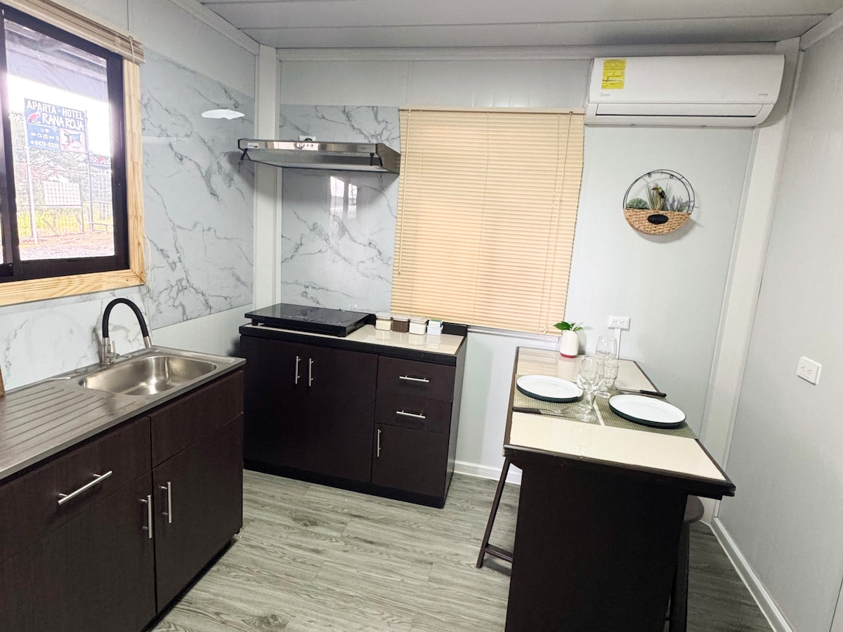 This charming second-floor apartment offers a peaceful retreat in a lush, green setting while keeping you close to all conveniences. Just 500 meters away, you’ll find local stores for your everyday needs, and the property includes a private parking space for your comfort. Inside, enjoy a private bathroom, a fully equipped kitchen, and ample storage with a closet. The apartment also features a TV and A/C to make your stay relaxing and enjoyable.