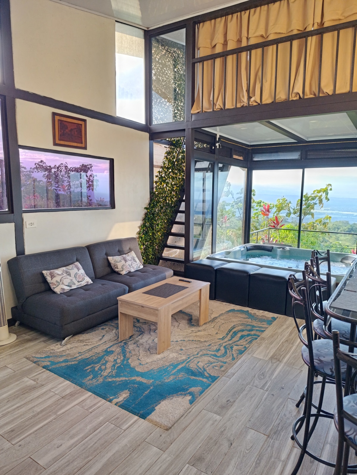 Enjoy a unique experience at this villa surrounded by nature. Perfect for disconnecting, it offers privacy, security, and a relaxing atmosphere. The private hot tub allows you to unwind while taking in the beautiful views. Explore the private forest and enjoy peaceful hiking in a tranquil environment, breathing in fresh air. This retreat reconnects you with the essentials, providing the ideal place to enjoy calm and natural beauty! We are 15 minutes by car from La Fortuna.