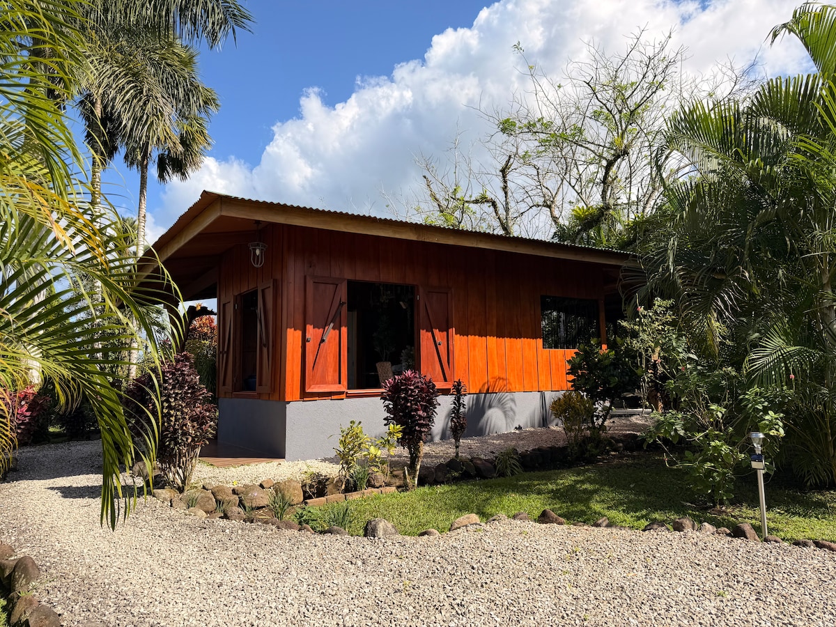 Relájate y desconecta en este alojamiento tranquilo y elegante, casita con jacuzzi privado, cocina equipada, internet de alta velocidad, hermosos jardines, fantástica vista al volcán arenal con puesta al sol, lugar privado. Piscina con agua temperada hermosa cascada deck y sillas de playa. De seguro querrás regresar nuevamente. Contamos con un Generador eléctrico para nunca tener ausencia de energía eléctrica.