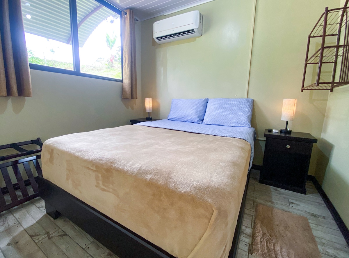Relájate en este espacio tan tranquilo y seguro cerca del volcán 🌋 arenal , la cuidad esta a 6 minutos donde encontrarás de todo farmacias , Walmart , hospital, etc Dentro de la habitación hay menú de restaurante (Kenko)que te brindan servicio express gratis a la puerta 🚪 Estás en los árboles 🌳 el baño amplio conexión de Alexa , cama King , cocina de gas 💨 La habitación se llama Cedro por la madera de su interior