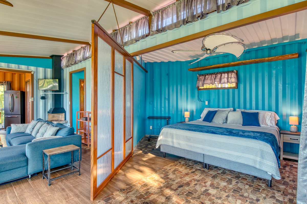 I have always been interested in using shipping containers for housing and after doing some research embarked upon my project to create the most unique Airbnb using three 40 foot containers. Now completed and ready for our guests to come and enjoy either Cargo 1,Cargo 2 or Cargo 3 Located in Sabanilla,10 minutes from the artisanal town of Sarchi. We are at an elevation of 3900 feet and have spectacular views of the central valley. Each unit is individually designed with many of my creations.