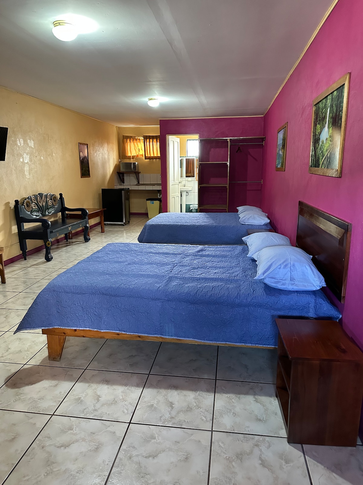 Enjoy a peaceful night in our spacious room with a comfortable queen-sized bed, set within a charming eco-friendly hotel powered by solar energy and inspired by traditional Costa Rican hospitality. After a peaceful night, wake up to a delightful morning with our buffet breakfast (extra fee), prepared with fresh, organic, and locally sourced ingredients. Every dish is handmade with care and love to give you the perfect start to your day. Come experience the true essence of Costa Rica with us!