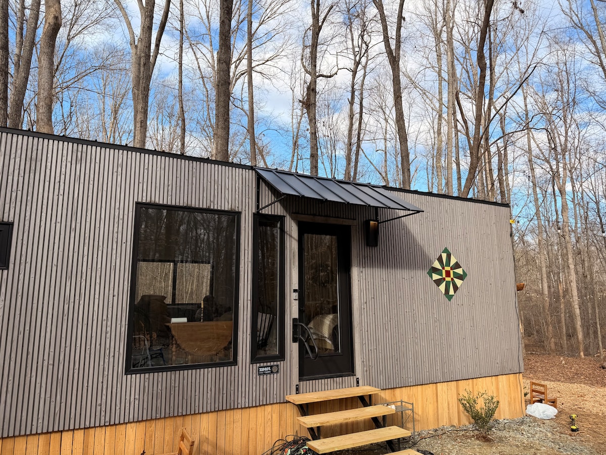 Private 1 bed/1 bath guest room conveniently located 10 minutes from Graham, Saxapahaw & Mebane & 30 minutes from Greensboro, Durham & Chapel Hill. Situated at Cranmore Meadows Tiny House Community, guests will also have access to a community kitchen & washer/dryer close by. Enjoy nature on our large deck with ample patio furniture and a jacuzzi. Our 30 acre property has trails through the meadows, a pond, and creek and is a perfect view into tiny living! All are welcome: LGBTQ+BIPOC