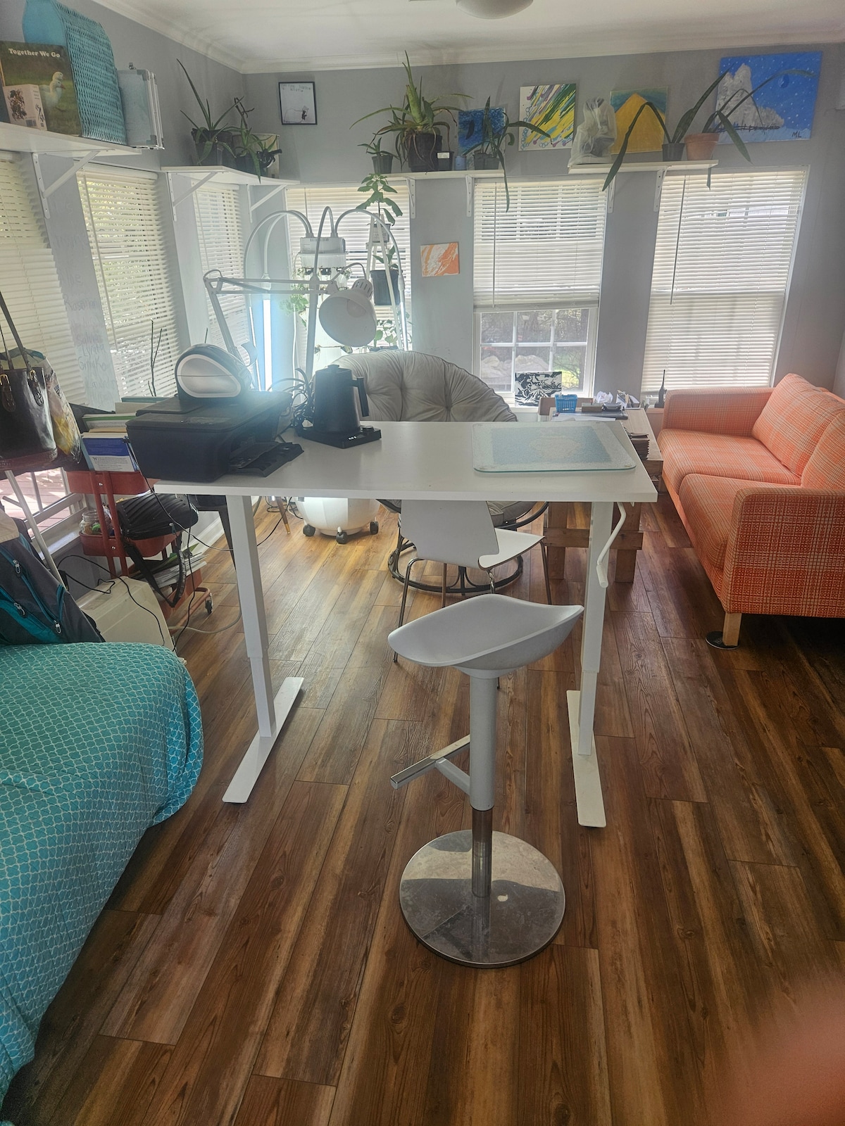 Promotions and events can be found on our website. TerraStay Farm offers sunrise-facing cottages in Saxapahaw within walking distance of the Haw River and all of Saxpahaw. The cottage is furnished with a queen bed with comfy linens (680-800 thread count), handmade furnishings, hickory hardwoods, a table for 4, a loveseat, a coffee table, and a kitchenette. French press & fresh coffee is provided. We are permitted up to four guests. There are up to 2 rollaway twins available upon request, FCFS.