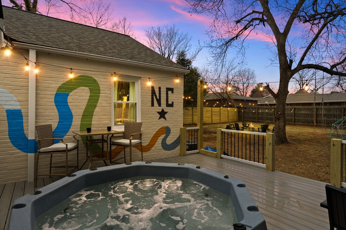 Charming 2 bedroom, 1 bathroom home in Elon, NC, just 3 minutes from Elon University. Newly renovated with modern appliances and a sleek bathroom. Relax on the side porch with a cup of coffee or walk down the stone walkway leading to a spacious family area with a gazebo, dining table, grill, and hot tub—perfect for cozy outdoor gatherings! The hot tub is open from October- March. CLOSED September- April.