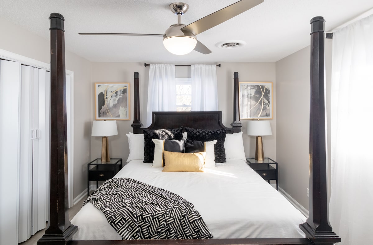 Full 2nd floor of a beautifully restored triplex. The apartment has 2 bedrooms, 2 bathrooms, chef's kitchen with s/s appliances. Off-street parking. Gorgeous front porch with seating area and classic swing. Because we are downtown, we have "city noise" - trains, traffic, and sirens. This is not a quiet little get-away. True city living at its best. The Belle is a no smoking property. No smoking or vaping on the premises. Long-term guests (30+ days) receive weekly housekeeping service.