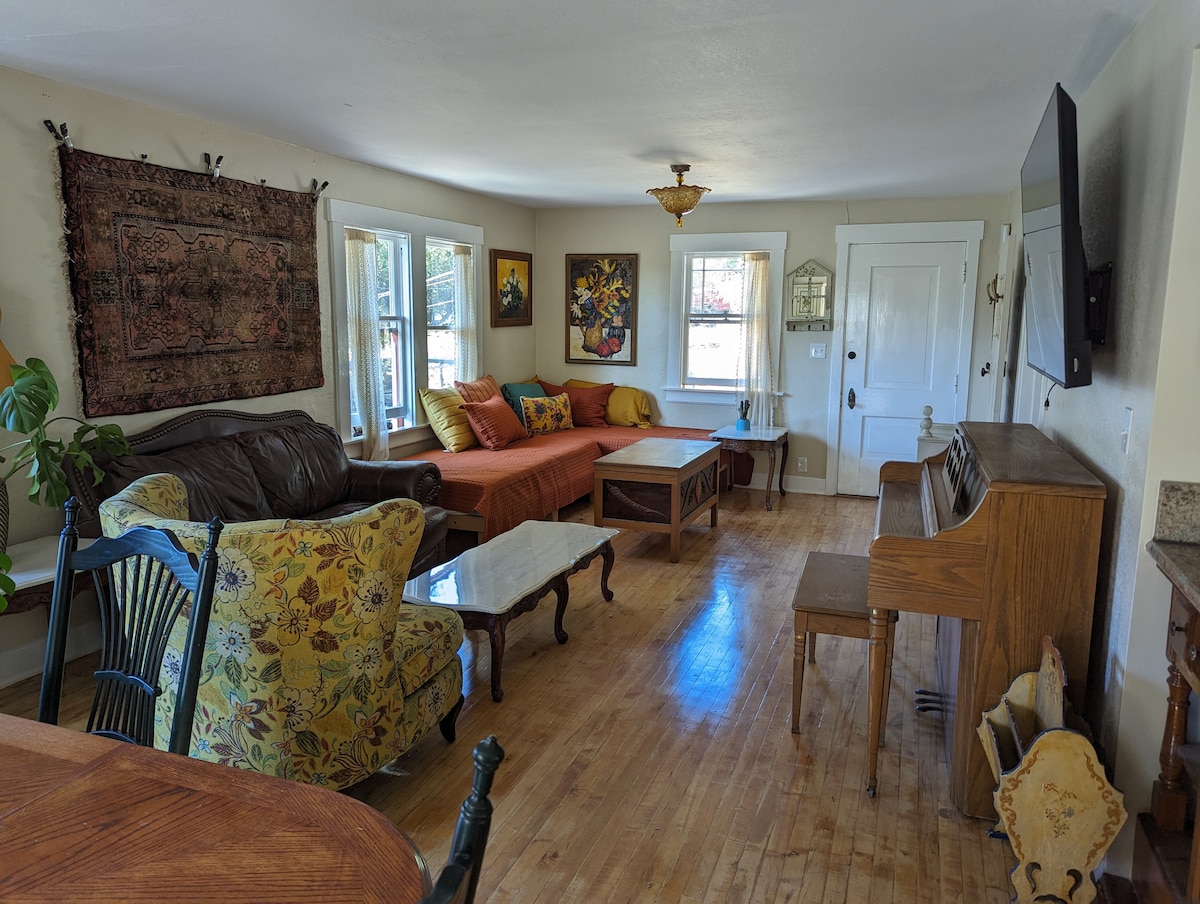 Enjoy comfort and privacy in this spacious retreat featuring a 3-bedroom, 2-bath main house and a separate 2-bedroom, 1- bath guest house with private entrances. Perfect for families, groups, or multigenerational stays. Includes central heating/AC, Wi-Fi, and a sunny outdoor space. Travel together, relax apart! The backyard offers a private oasis with outdoor furniture and a BBQ grill—perfect for dining al fresco or enjoying warm evenings under the stars.
