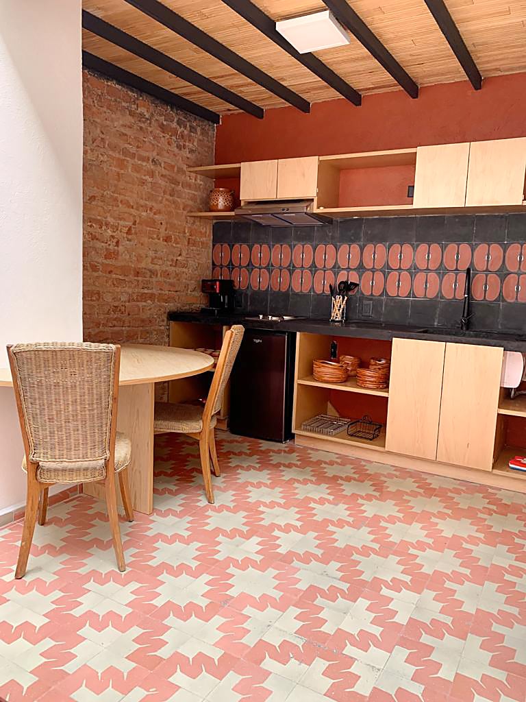 Vintage house in a safe area to walk in the CDMX, I live with my wife Andrea and 2 small children! We have a cat and dog. Independent entrance entering through the living room on a somewhat narrow staircase that reaches the outside patio and connects with a spiral staircase to the room. We have a luggage room on the ground floor, the room has TV, Wi-Fi, kitchenette, outdoor dining room and bathroom. Ideal terrace to relax and read in the hammock. Great location in Condesa full of walking places!