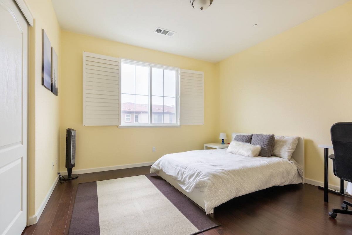 Your bedroom has a private bath and privacy in a 4BR/3BA home in a quiet and safe neighborhood. San Ramon has been voted one of the safest large cities in CA. You will rest comfortably on a queen organic cotton Saatva mattress, heated cotton mattress pad & new bedding. You are welcome to use the Living Room to watch TV and cook in the Kitchen. There is a laundry/supplies area upstairs. Sitting/dining area also on back deck.
