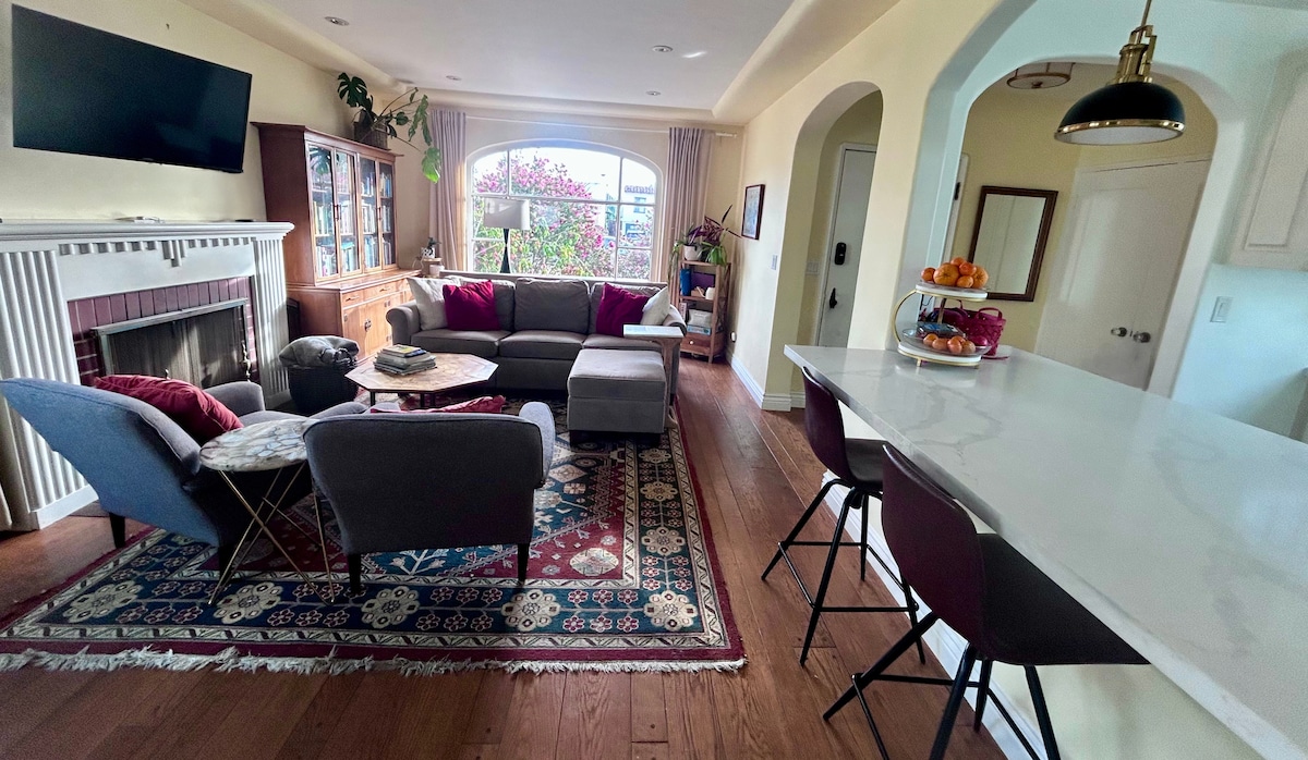 Located on a tree lined street on the island of Alameda, is this beautiful 1885 Victorian Cottage. The ground floor level has 1 bedroom/1 bathroom. The living room has a queen pullout sofa. The kitchenette is equipped with a portable 2 burner electric stove, small refrigerator/freezer, and sink. There is also a built in microwave as well as a portable oven. There is a desk for your working needs along with high speed internet. This flat is for the person who appreciates design and comfort.