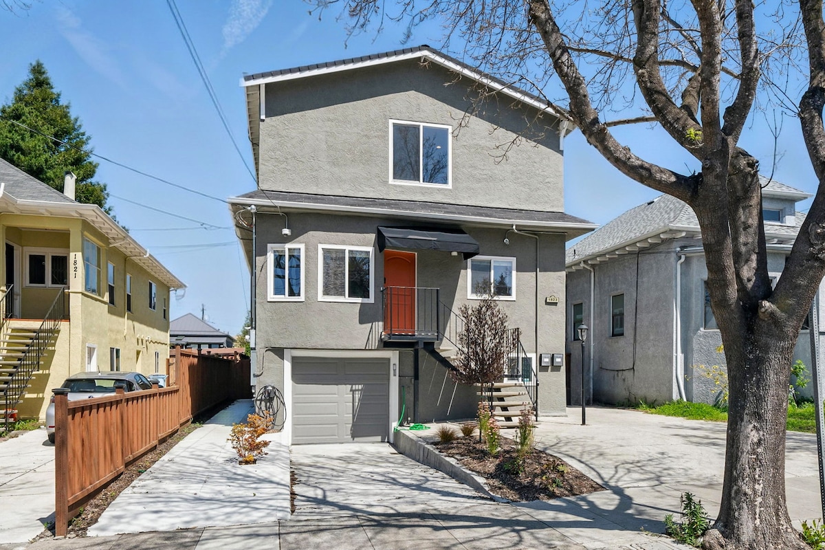 Bright, modern Berkeley retreat with 3 queen bedrooms, 2 bathrooms, a modern kitchen, a sunny living room with a projector, and family-friendly touches. Walk to Ashby BART, express bus to SF, cafés, and Berkeley Bowl. Enjoy fast WiFi, in-unit laundry, driveway parking, and an EV charger. Comfortable, convenient, and ready for your stay. Ideal for work teams, families, Cal visits, or exploring the Bay Area. Berkeley STR Certificate Number: ZCSTR2025-1060