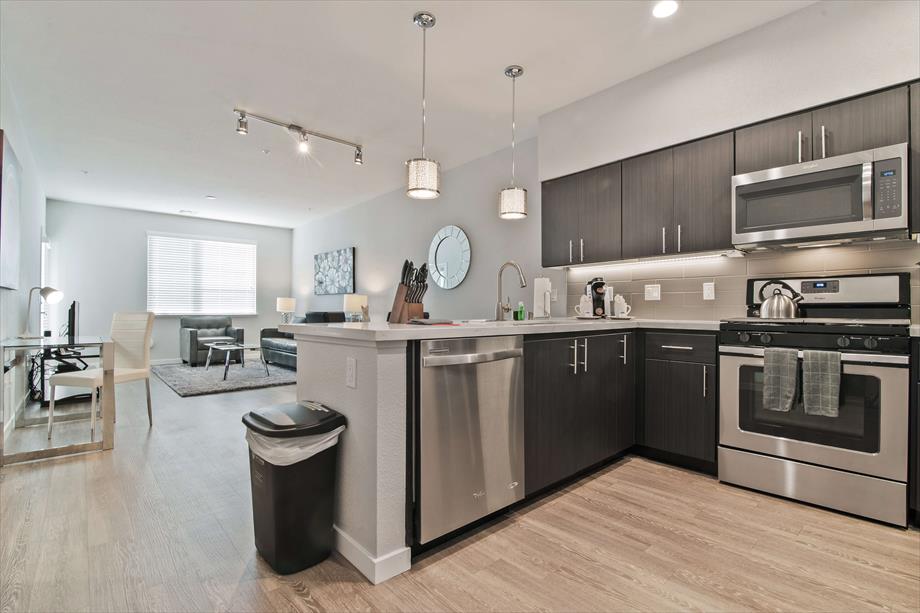 明亮的硅谷1卧室|厨房+洗衣机/烘干机