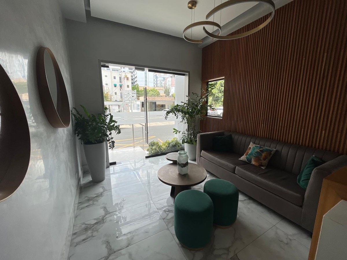 BRAND NEW LUXURY APART. in Downtown Bella Vista. 2 BEDS. 2 BATHS. 2 TV’s, POOL & LOUNGE AREA. GYM. PRIVATE BALCONY. PRIVATE PARKING. . DOOR MAN 24/7. Smart Lock Entry ✅ Laundry in Unit, Wifi, Cable & NETFLIX included, also Coffee & Bathroom Soap ✅ Building name: Tree Tower III. Close to Shopping Malls, Restaurants, Supermarkets, Movie Theaters. One of the best and most safe areas of beautiful Santo Domingo. 30 min Drive to Airport Las Americas. 20 Min drive to the beautiful Colonial Zone.
