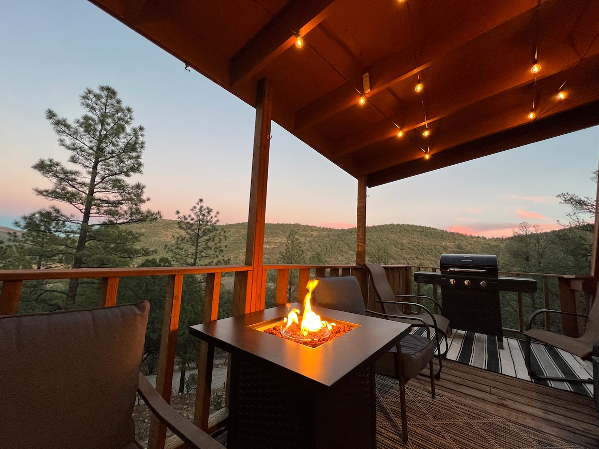 Welcome to Shangri-La! A unique, private, and magical setting right in the middle of Cloudcroft. Almost half a fenced acre where you can wander the grounds, enjoy the fire pit, read in the cozy separate office, or grill on the barbecue. Within walking distance of the Lodge and golf course, or the Village boardwalk for shopping. Lots of personal touches! And if you watch for fairies, birds, or other forest creatures, they are all close by! Hot plate, fridge, and microwave provided.