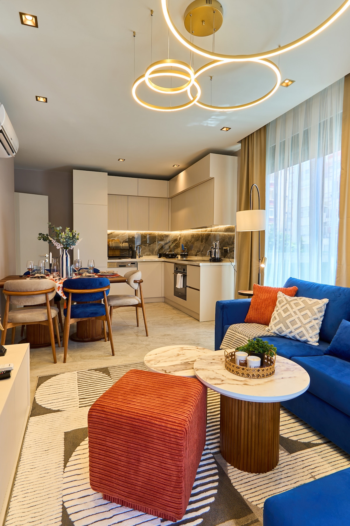 Welcome to our 2-bedroom home in Alanya, just 1 minute from Cleopatra Beach! Our home is perfect for families and features stunning views of the Mediterranean Sea. Enjoy a fully equipped kitchen and well-designed living room with comfortable seating. Relax on the balcony and take in the beautiful sights and sounds of the sea. Book your stay today for a perfect beach vacation in Alanya!