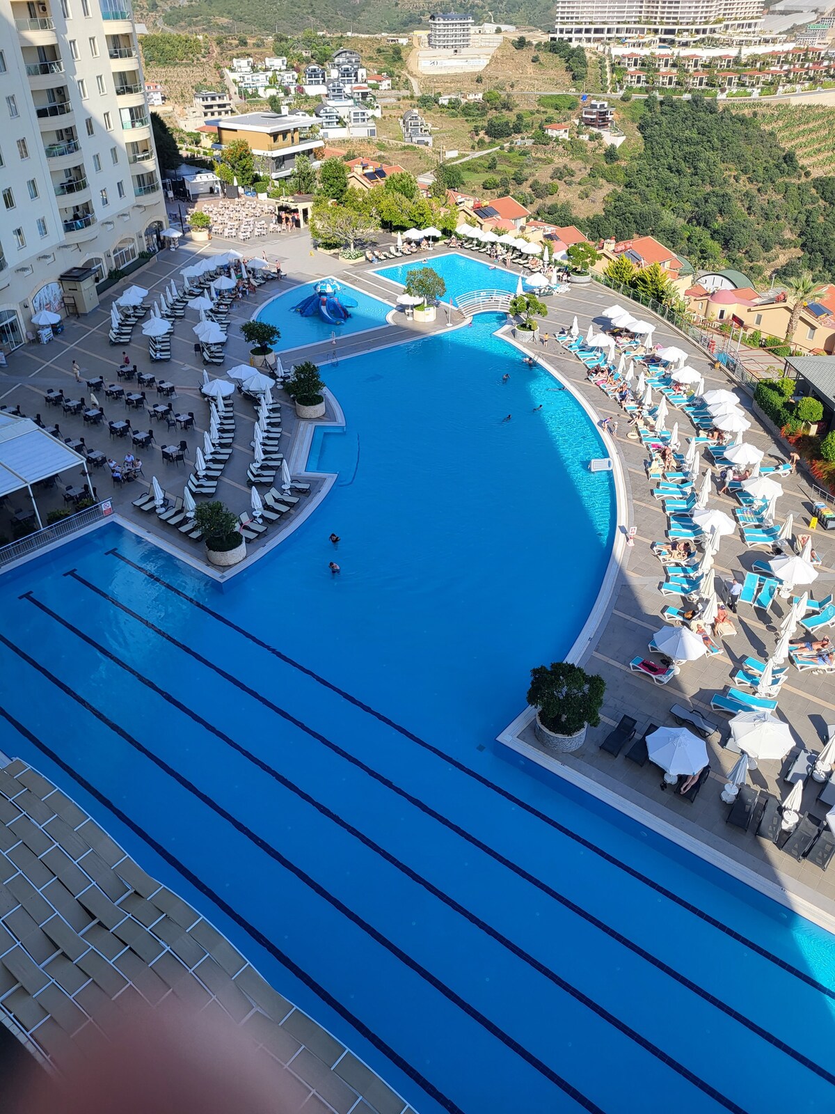 Lovely & Cozy Beachfront Large Studio Apartment Lexus Residence (55m2) Beach access and sea view. All season full activities with big balcony to enjoy your morning coffee and meals Smart Key Self C/IN 7 km to Center & 35 km to Gazipasa Airport. Depending on season Large indoor & outdoor pool, Fitness, Water Slide, Tennis Court, Game room, Cinema Salon, Children's playroom. Party room, BBQ area & 7/24 Security (Turkish Bath and Sauna is open on weekends)