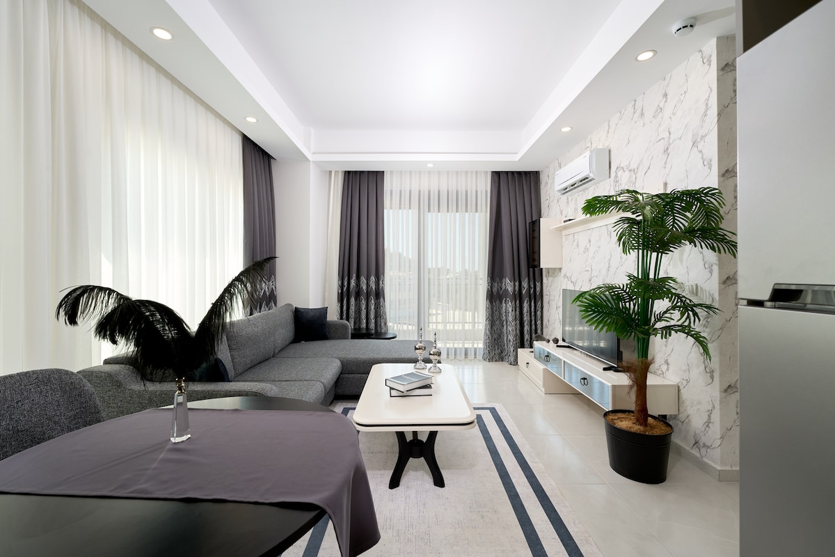 Njut av en elegant upplevelse på detta centralt belägna boende i ett lugnt område. Lägenheten är fräsch och fullutrustad, erbjuder bekväm och njutbar vistelse. Huset är byggd år 2020, erbjuder gemensam pool, bastu, gym och jacuzzi. Belägen 150 m från stranden och nära några av de bästa restauranger i Alanya. Promenera 5 min längs stranden och du kommer till Ataturk torget. Migros supermarket finns i närheten.