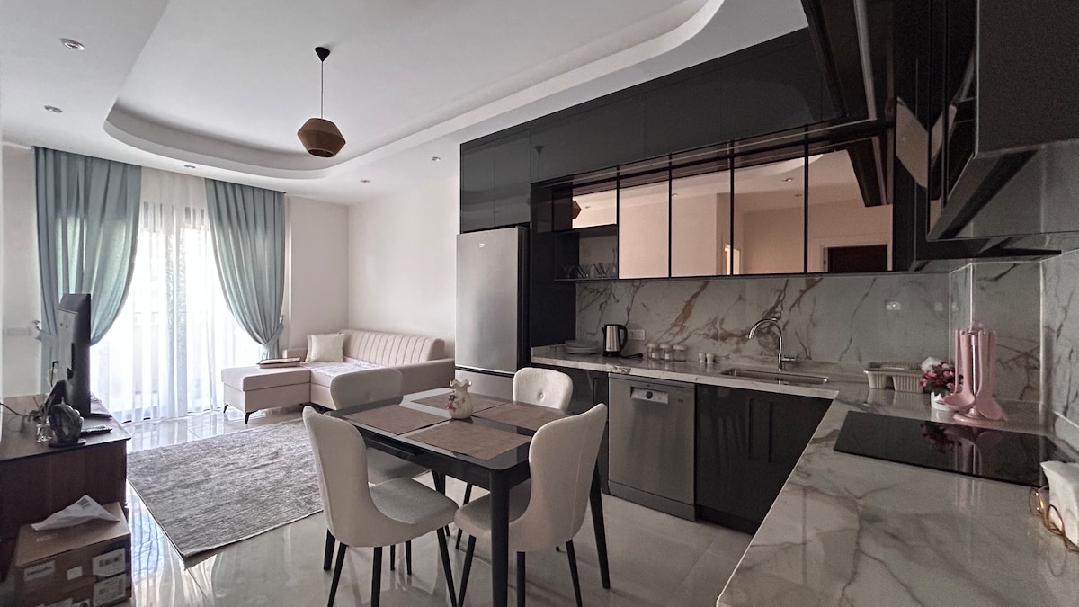 Квартира 2+1 с современной техникой и дизайнерским ремонтом в самом центре Алании на первой береговой линии. Идеальное место для пляжного отдыха. В пешей доступности рестораны, магазины, овощные базары, клубы и достопримечательности Алании. Квартира новая в комплексе с 5-звездочной гостиничной инфраструктурой, 4 бассейна, спа, детские игровые, тренажерный зал, кинотеатр, подземный паркинг