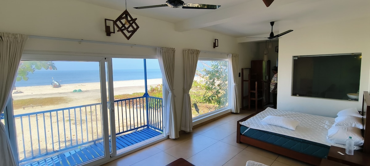 Beachfront Bliss in Alleppey Kerala: Discover Akoya Beach Villa, Alleppey. Wake up to the gentle sound of the Arabian Sea and enjoy the view of Alleppey's golden sands right from your bed at Akoya Beach Villa. This villa was designed by the host, who fell in love with its stunning sunsets three years ago. Whether you’re traveling as a couple, with family, or with friends, Akoya Beach Villa offers a special beachfront experience, blending the natural beauty and rich culture of Alleppey.